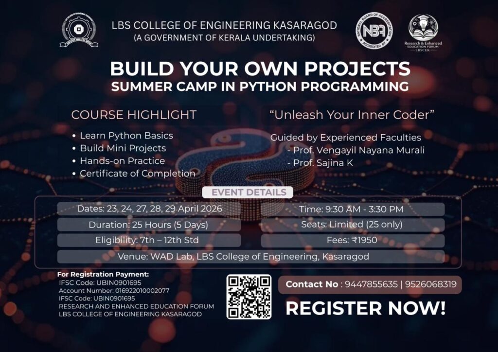 Venue: WAD Lab, LBS College of Engineering, KasaragodEligibility: Students of Classes 7 to 12